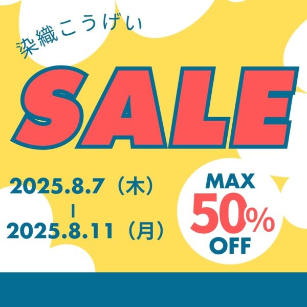 染織こうげい神戸店では、8月7日(木)~11日(月)の5日間、夏の大セールを開催いたします。店内商品が50%~20%OFFと大変お得になるこの機会。ぜひお立ち寄りくださいませ。(※一部対象外商品がございます)