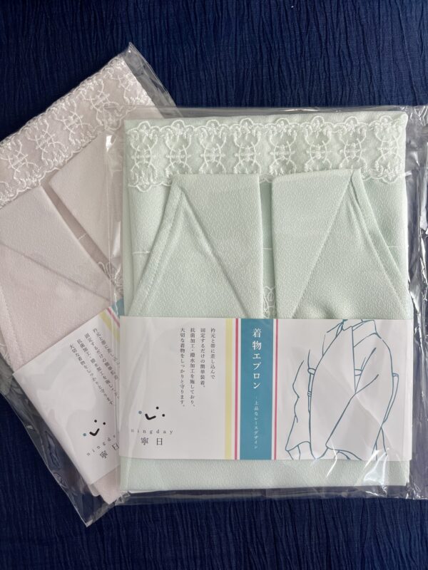 衿元と帯に差し込むだけで簡単装着。抗菌・撥水加工済みで、