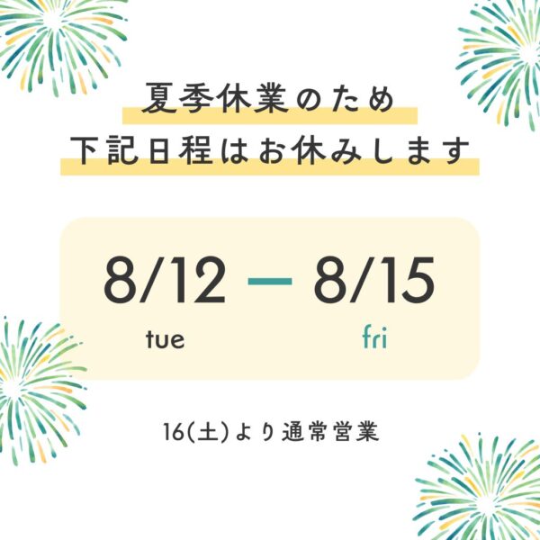 平素より染織こうげい神戸店をご愛顧いただき、誠にありがとうございます。誠に勝手ながら、8月12日(火)~15日(金)の4日間、夏季休業とさせていただきます。期間中は商品のご案内やお問い合わせ対応をお休みいたします。お客様にはご不便をお掛けいたしますが、何卒ご理解賜りますようお願い申し上げます。8月16日(土)より通常営業いたします。