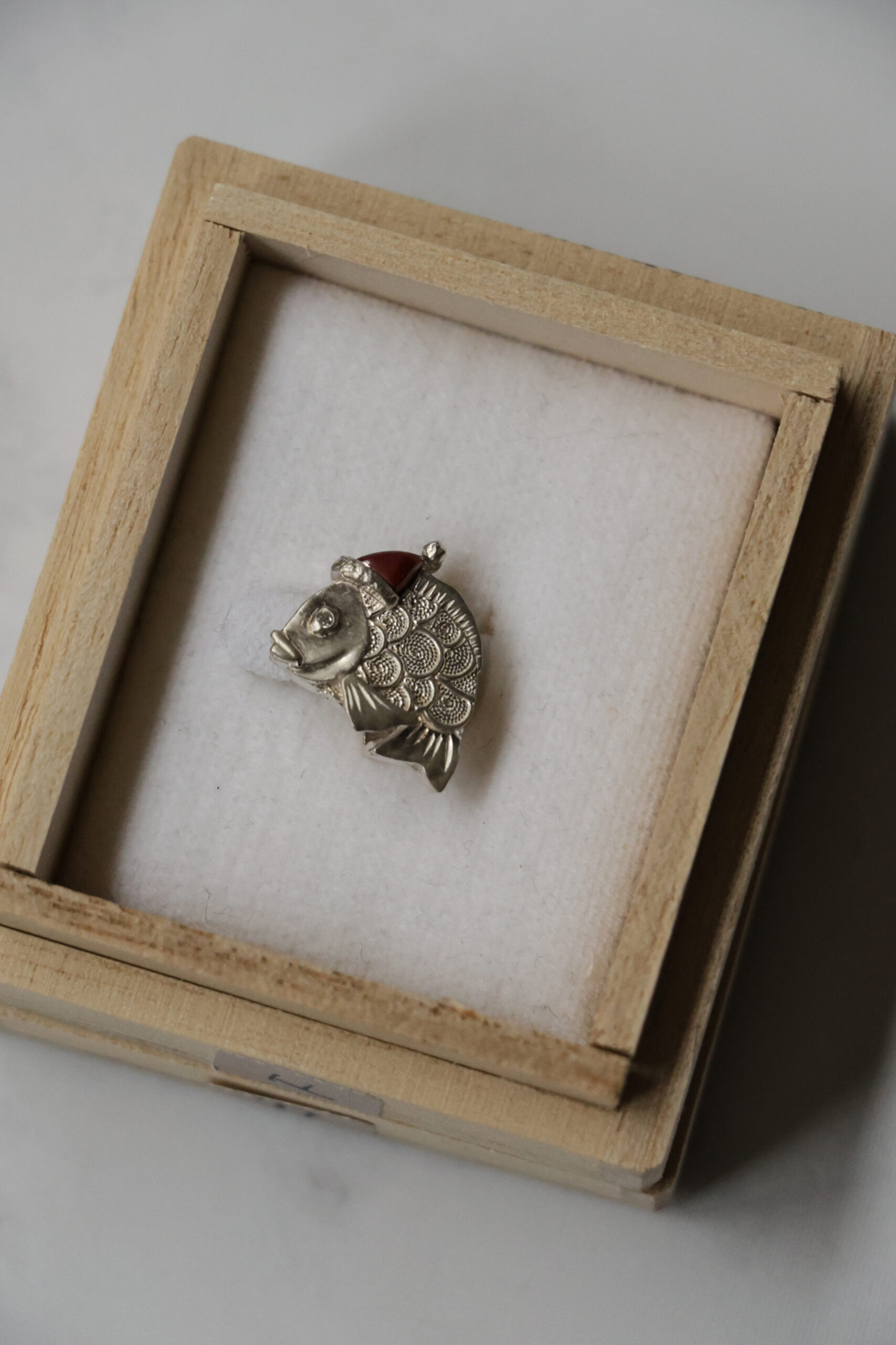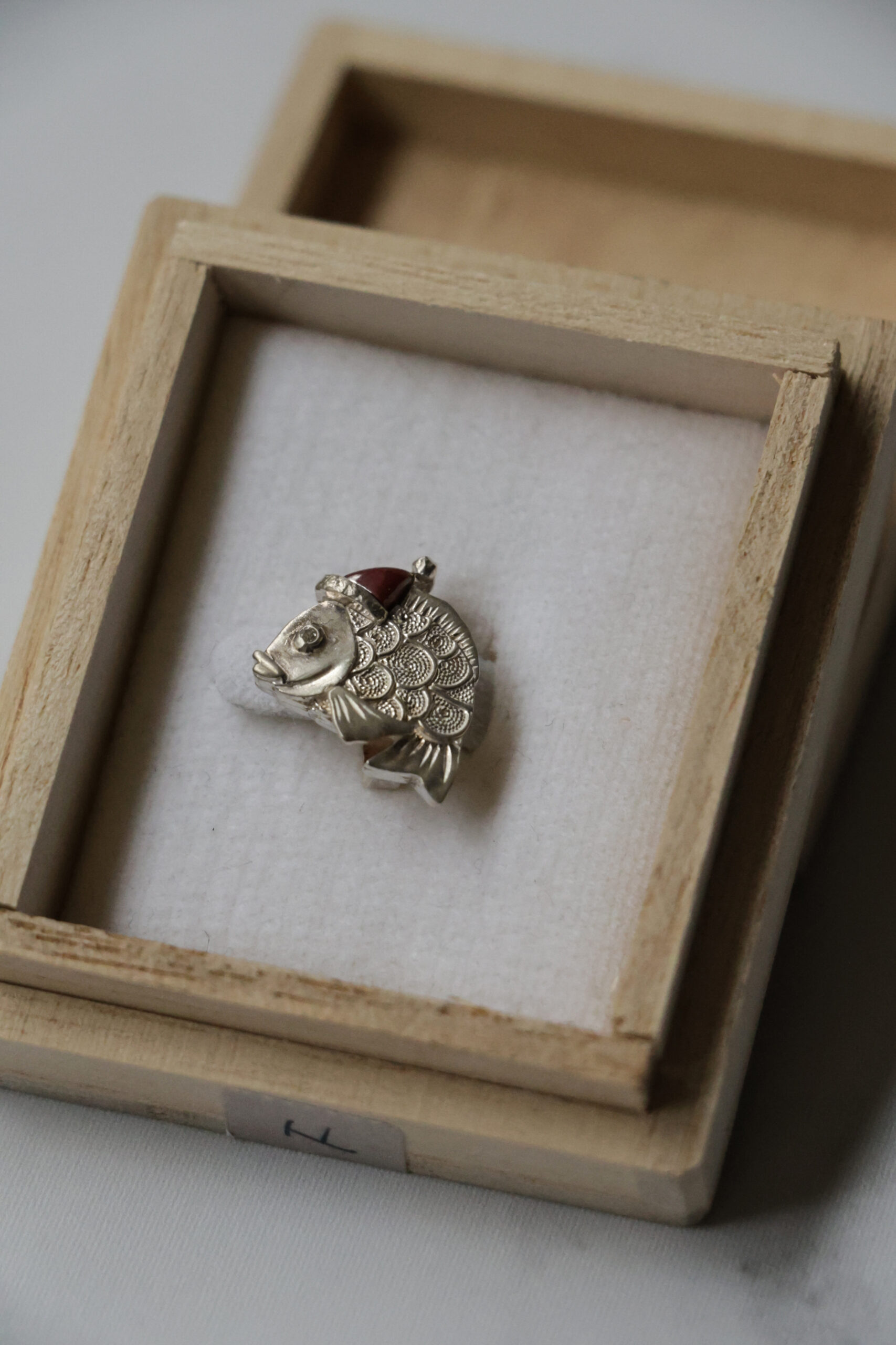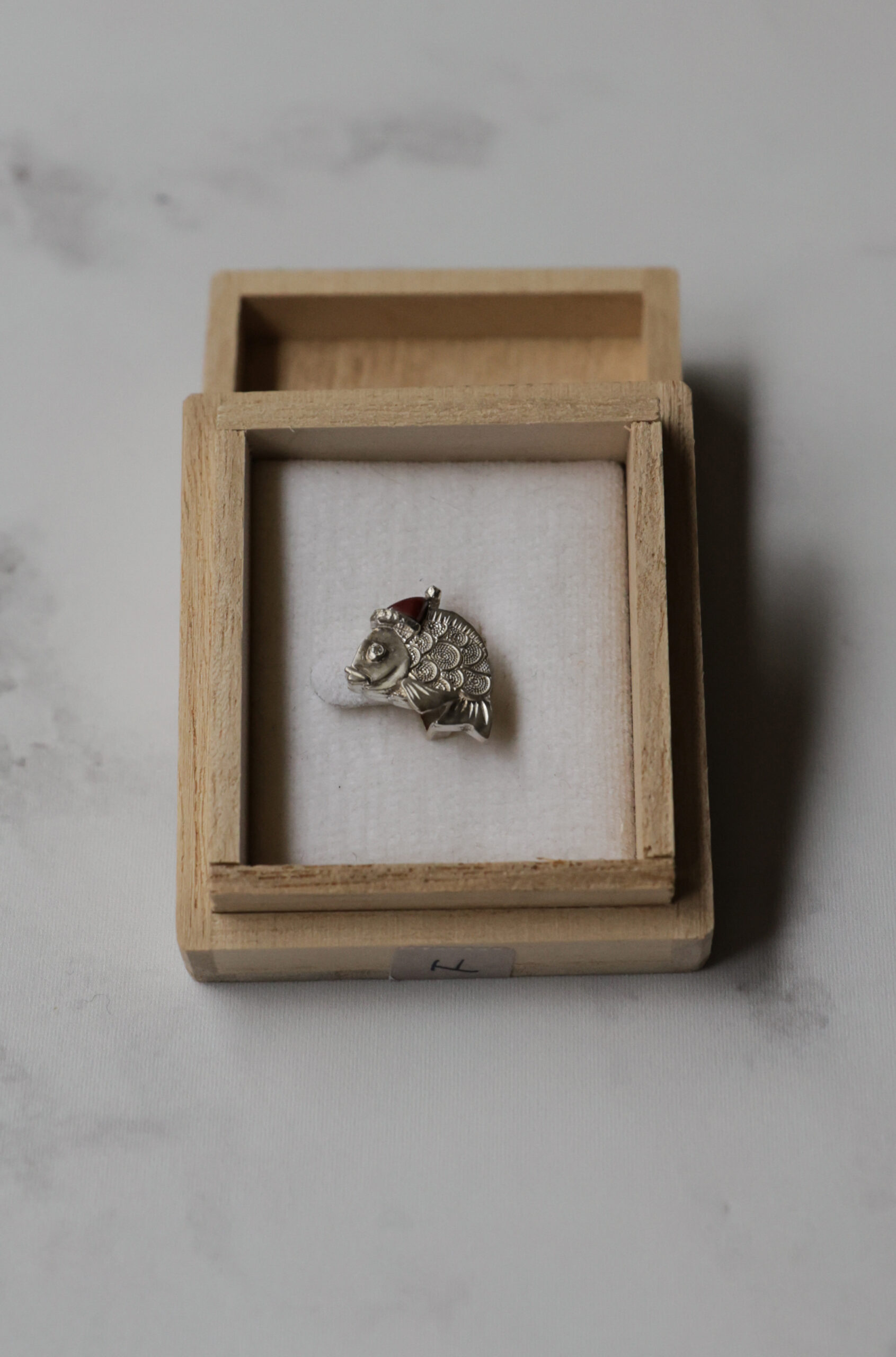 ころんと愛らしい鯛が、なんとサンタクロースの帽子をかぶったユーモラスな意匠。鯛は「めでたい」に通じ、古くから幸福を呼ぶ象徴として親しまれてきました。