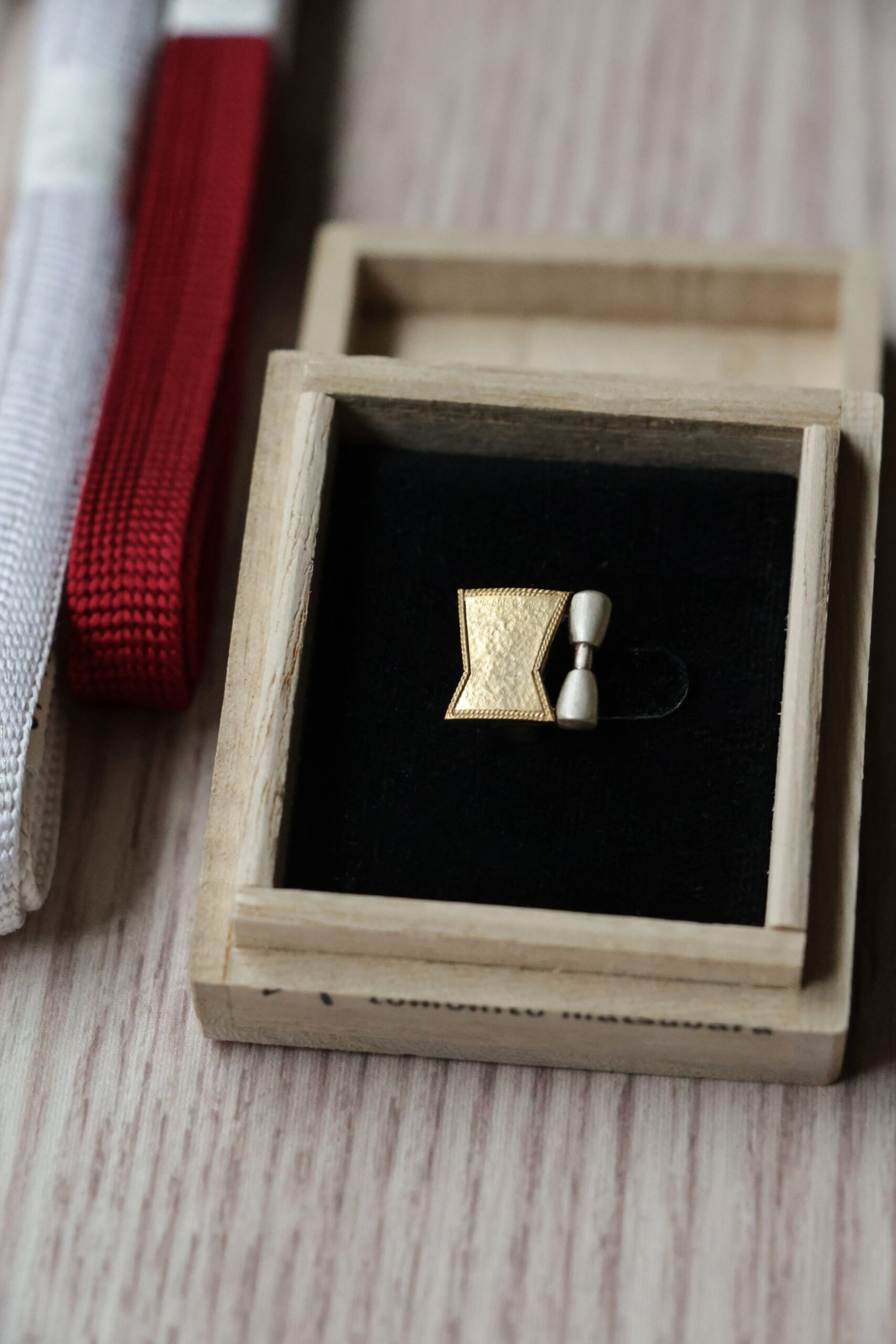 松原氏が得意とする銀線細工は、模様に沿って銀線を巻き上げ、丁寧に溶接して仕上げる高度な技法で、控えめながら確かな存在感を放ちます。